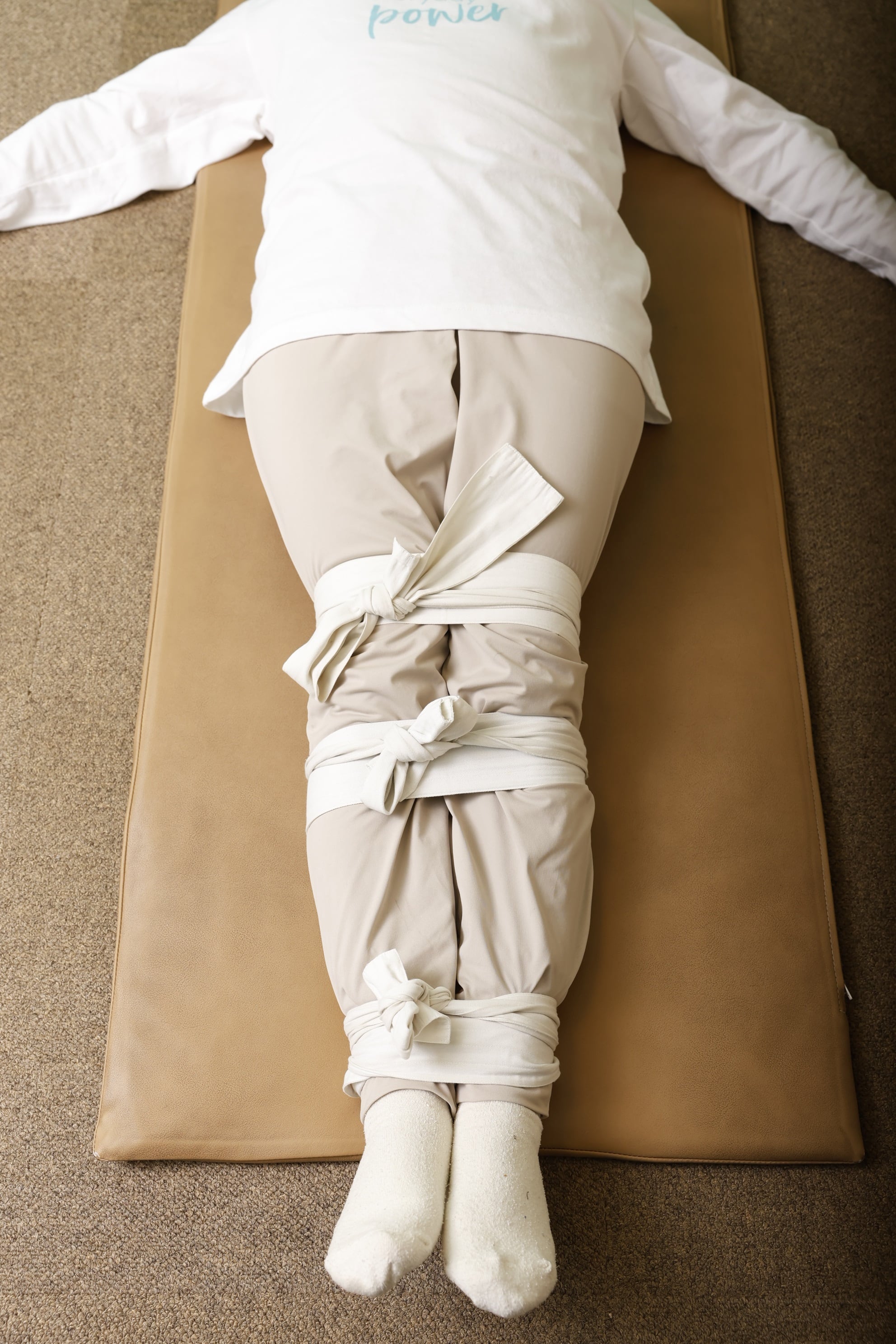 寝る時などに両脚を結び、偏った脚の筋肉の緊張をほぐすストレッチ用紐です。両方の脚を合わせて結ぶことにより硬くなった脚の筋肉がほぐれ血流が改善します。冷え性やむくみなどの改善にも大変お勧めです。